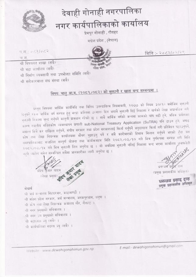 चालु आ.व. (२०८१ -०८२) को भुक्तानी र खाता बन्द सम्बन्धमा ।