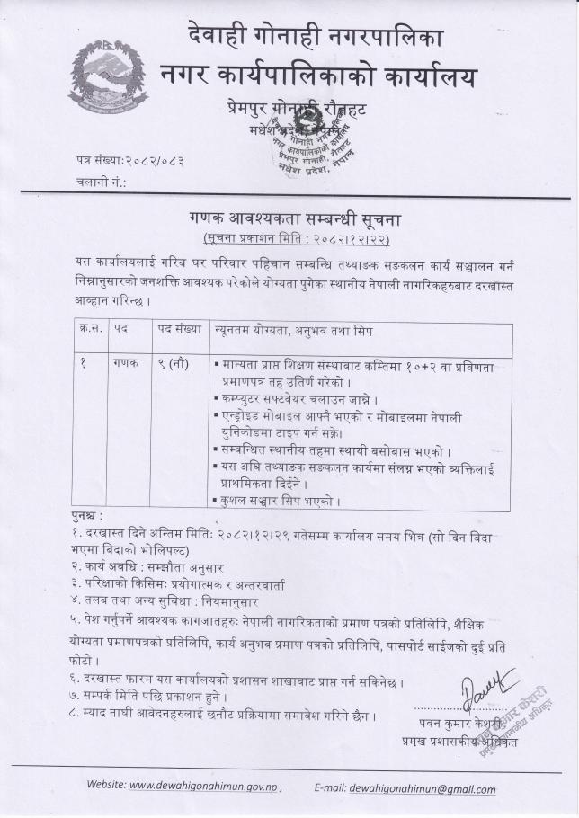 देवाही गोनाही नगरपालिकाको "घ" वर्गको निर्माण व्यवसायी इजाजतपत्र सम्बन्धी कार्यविधि,२०७६