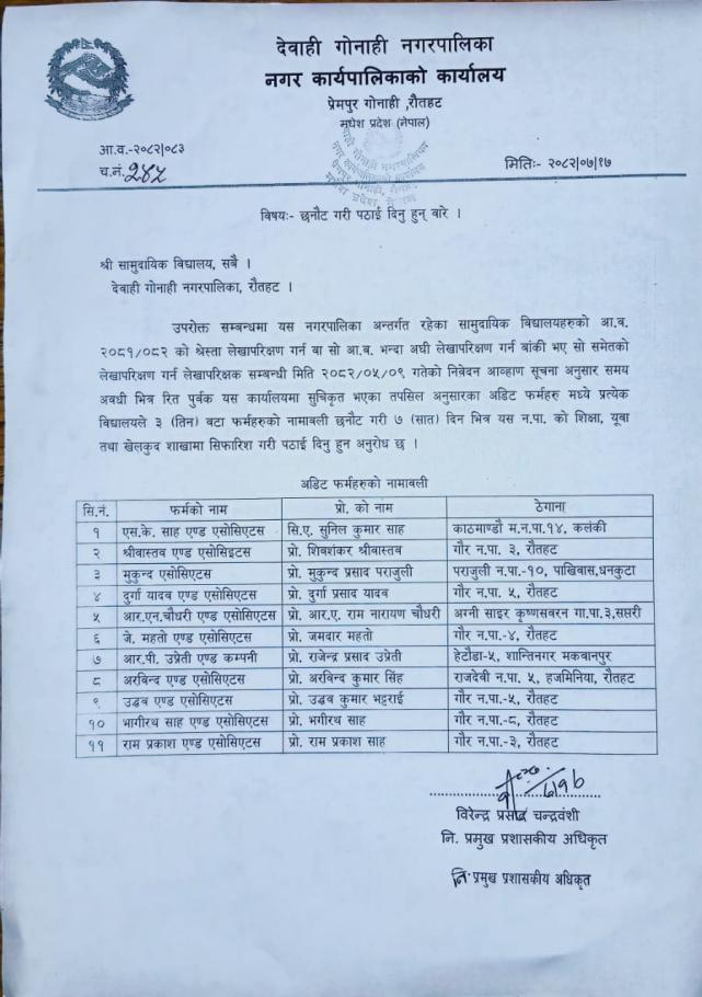 छनौट गरी पठाई दिनु हुन् बारे ।